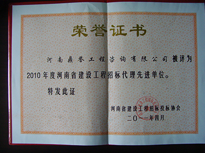 2010年度河南省建设工程招标代理先进单位