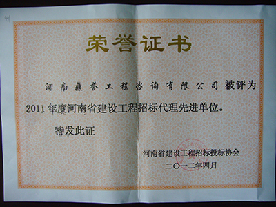 2011年度河南省建设工程招标代理先进单位