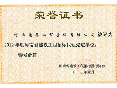 2012年度河南省建设工程招标代理先进单位
