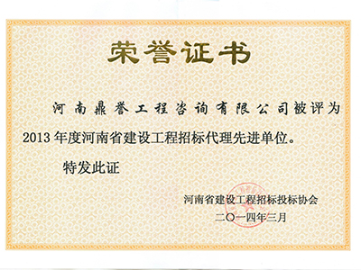 2013年度河南省建设工程招标代理先进单位