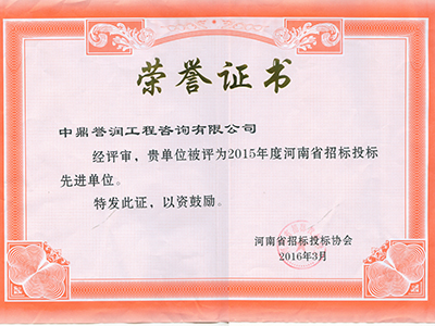2015年度河南省招标投标先进单位