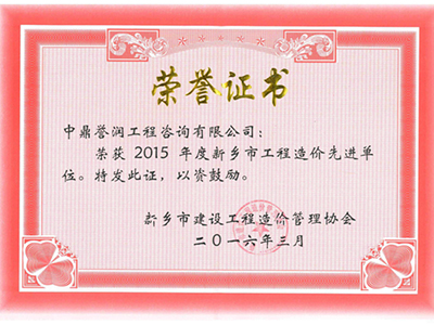 2015年度新乡市工程造价先进单位