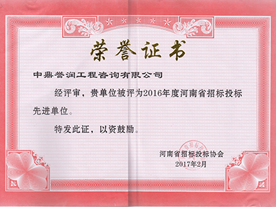 2016年度河南省招标投标先进单位